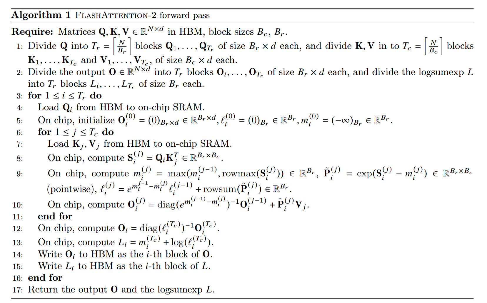 - 第二次 I/O 写: 将更新后的 online 统计量 \(\ell_i^{new}\) 和 \(m_i^{new}\) 也写回 HBM,以便下一个外循环(\(j+1\))可以使用它们。