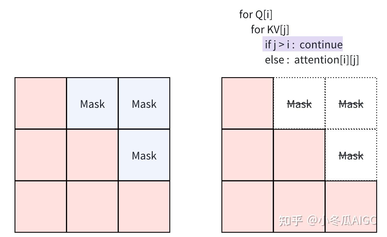 - Causal Masking:Flash Attention 是块计算的,可以直接跳过 causal mask 的块