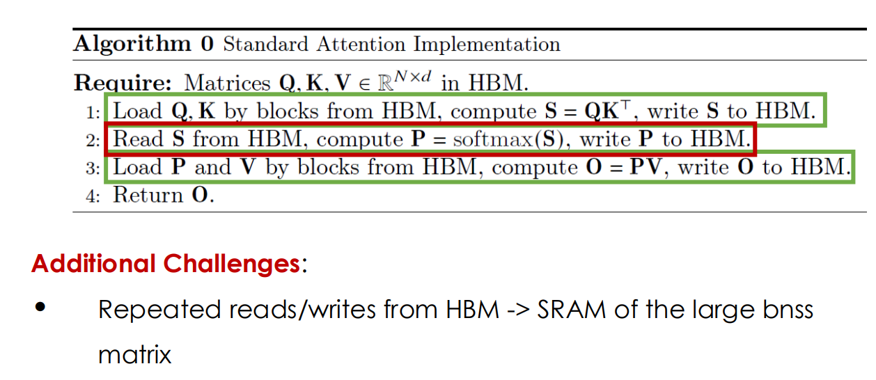 传统的 Attention 计算需要对 HBM 进行存取 8 次,非常耗时