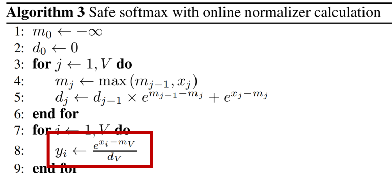 在正式进入 Flash Attention 之前,我们需要重新回顾下 softmax 的过程以及 *online softmax 如何实现的,FA 主要思想就是进行分块计算注意力,Online-Softmax 是 FA 实现的关键