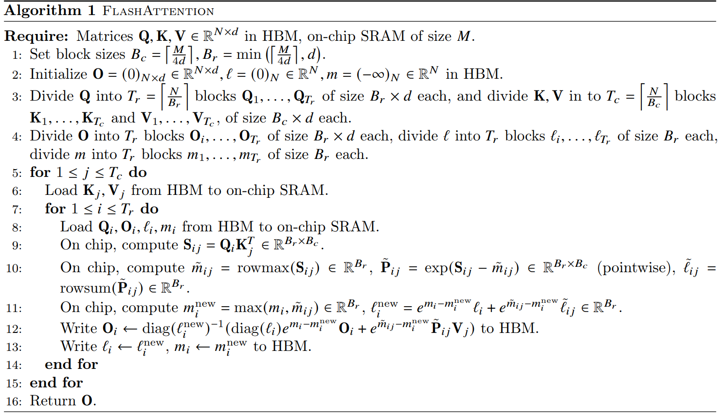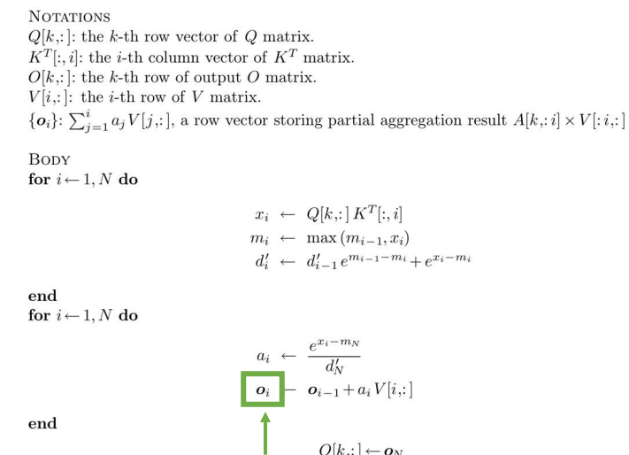 - 第二次 I/O 写: 将更新后的“在线”统计量 \(\ell_i^{new}\) 和 \(m_i^{new}\) 也写回 HBM,以便下一个外循环(\(j+1\))可以使用它们。