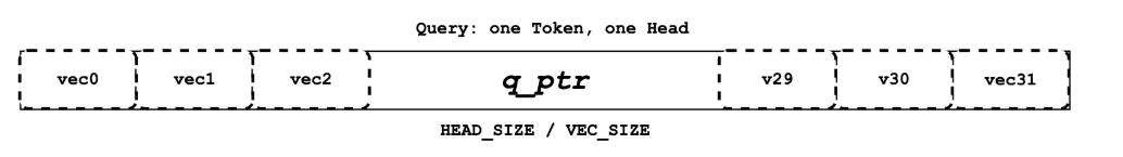 - 定位 Query 数据:每个线程块首先计算出它负责的 Query Token 在全局内存中的地址,即 q_ptr。这个指针在当前线程块的整个生命周期中是固定的。