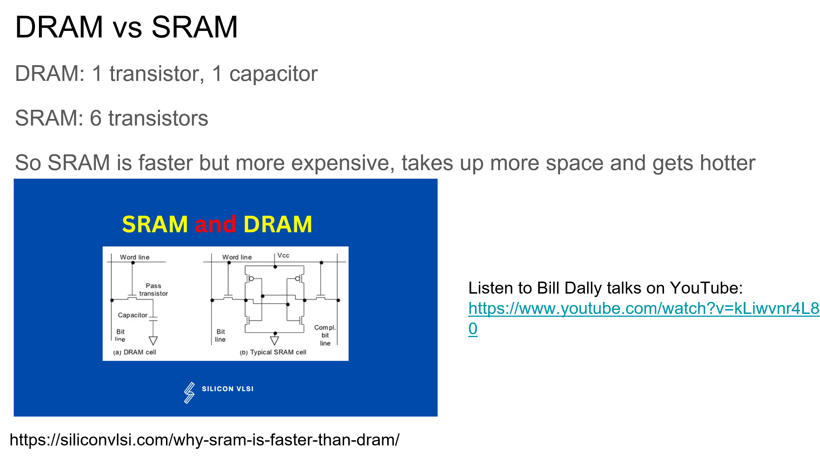 - SRAM 比 DRAM 更快,但也更贵;SRAM 占用更多空间且发热更多; 实际上SRAM就对应了GPU的Shared Memory,而DRAM对应的则是Shared Memory。