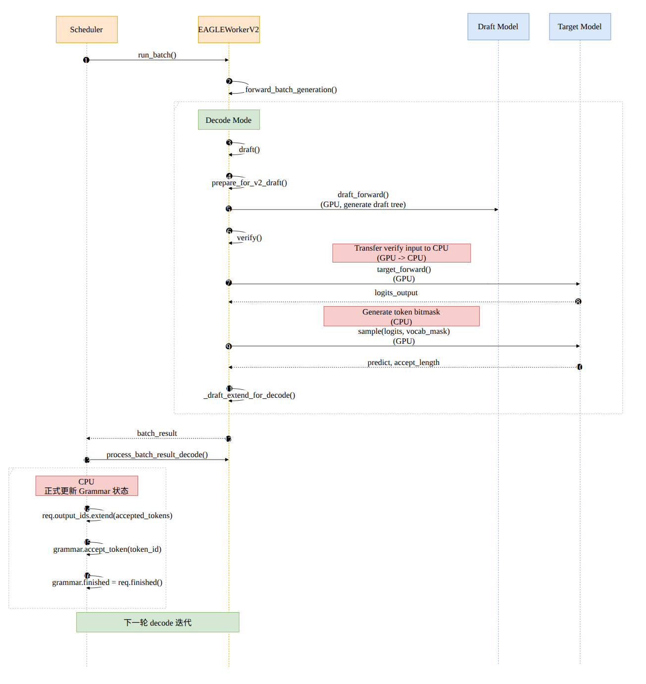 - GPU 进行 Target Verify 的同时,CPU 对上一轮的 grammar accept token 进行处理