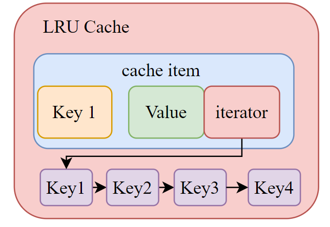 相较于标准的 map + 链表实现,nebula 用 std::unordered_map<K, std::pair<V, typename std::list<K>::iterator>> 替代std::map,通过一个指向在链表中对应键的迭代器实现 O(1)时间复杂度更新。std::unordered_map 替换了 std::map,意味着查找、插入、删除的平均时间复杂度从 O(log N)提升到了 O(1),但牺牲了键的有序性(LRU 缓存通常不需要)。