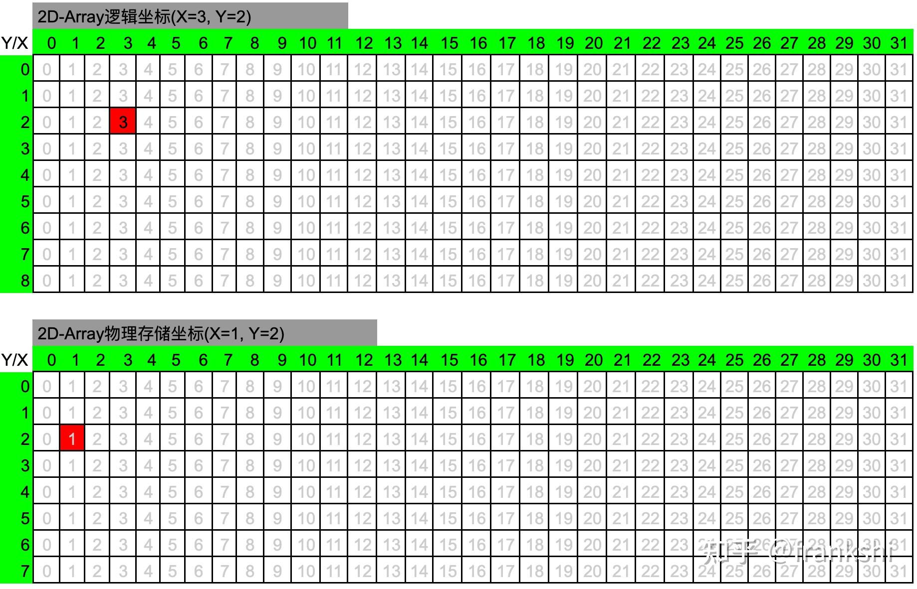 物理位置表示其对应元素在实际存储数据的 shared memory 中的位置坐标。
