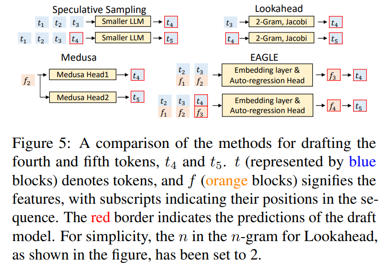 消除不确定性:EAGLE 在草稿模型的输入中加入前一步采样得到的 token 序列(即 shifted token)