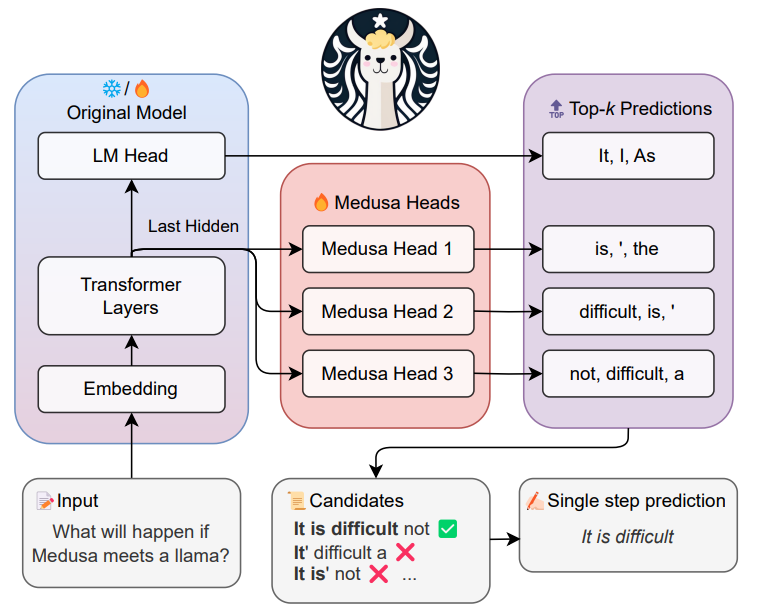 - 📄 “MEDUSA: Simple LLM Inference Acceleration Framework with Multiple Decoding Heads”