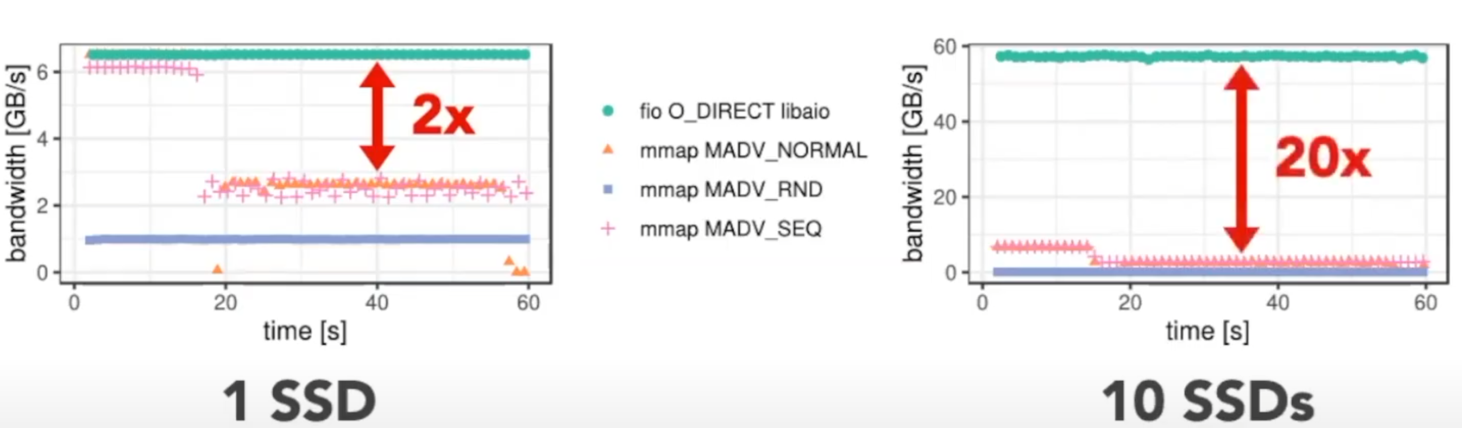 传统观点认为在更好的硬件上如 PCIe5.0 NVMe 上,mmap 性能比传统的文件 IO 更好,因为它避免了两个主要的开销来源。
