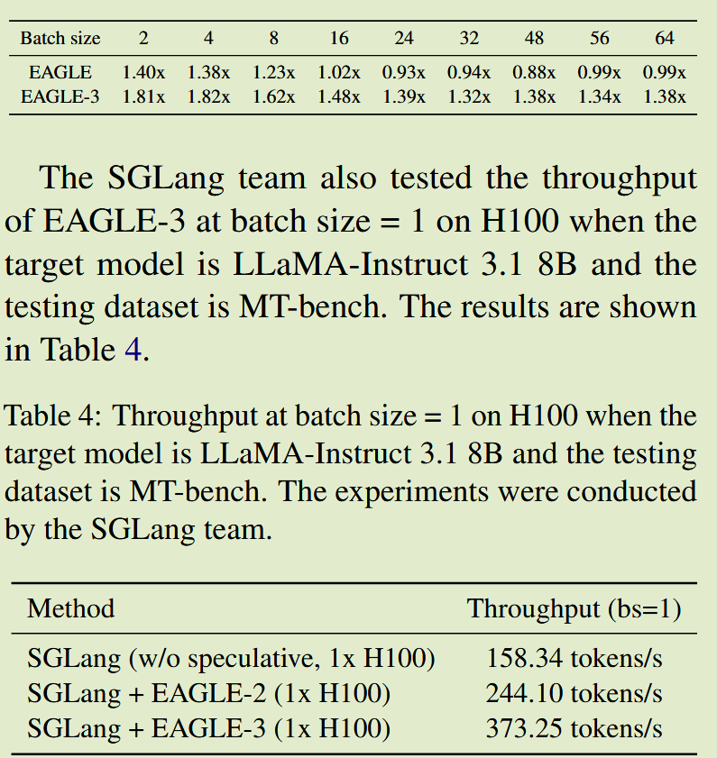 - 第二个实验 EAGLE-3 在批量大小 = 1 时的吞吐量