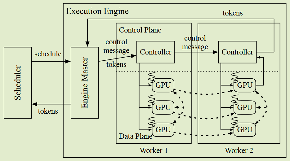 - 接收预定迭代的执行结果。由于调度程序在每次迭代时都会收到返回,因此它可以检测请求的完成并立即将其生成的令牌返回给客户端