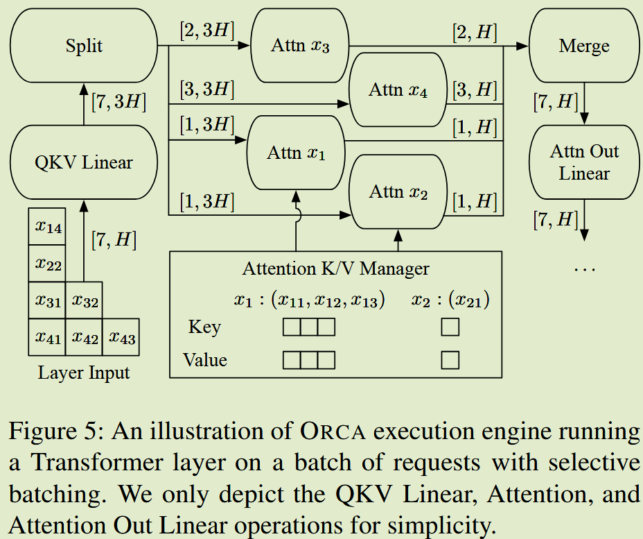 - ORCA 解决了模型推理系统调度只能等待一批 req 中生成最长的 req 的问题,提出了 iteration-level scheduling,允许 req 在每次迭代时动态进入和退出批处理