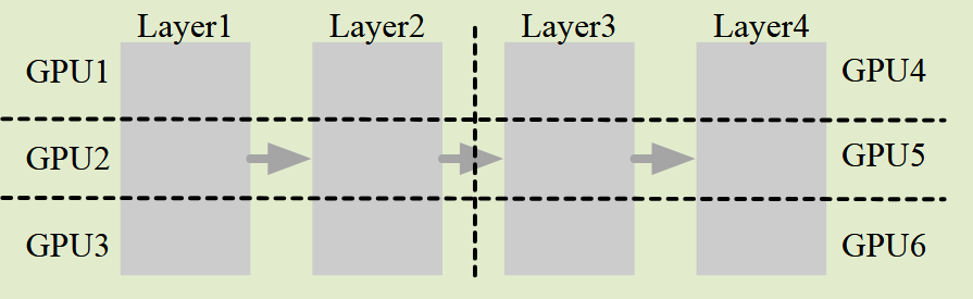 - PP,将不同的 layer 分到不同的 GPU,GPU间只在跨 GPU 的层间有 hidden_states 的通信开销