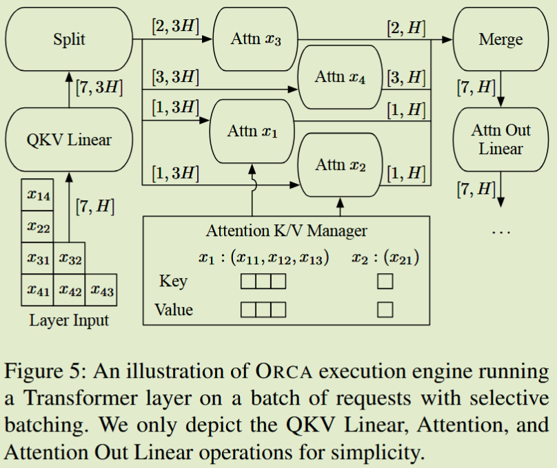 - Orca 用 Selective Batching 局部解决这一问题 —— 让非-Attention 层(如 Linear、LayerNorm)跨请求混合执行,但 Attention 仍需“按请求拆开”运行。