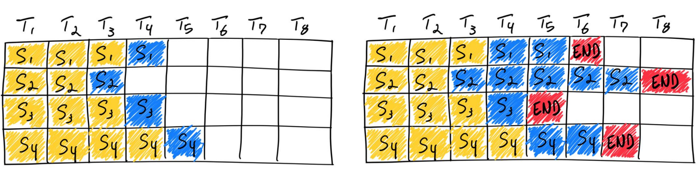 我们希望尽可能减小 TTFT 和 TBT,所以提前完成的请求要立即退出推理以及后来的请求要立即开始推理