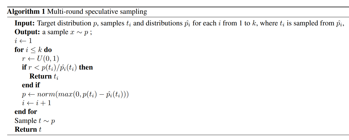 - 如果所有候选都被接受,只接受 γ-1 个,然后再采样一个额外的 token修正的拒绝采样方案可以保持与 target 采样相同的目标分布