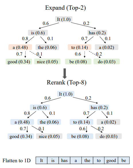 - 依据预测的 probs 构造了一个稀疏的 candidate tokens 树