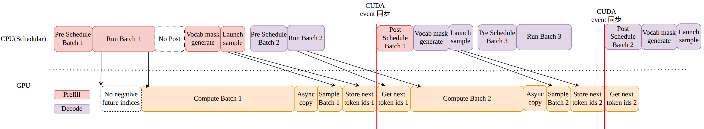 - 后面的 Scheduler 允许 CPU 和 GPU overlap,实现了 zero overhead scheduler